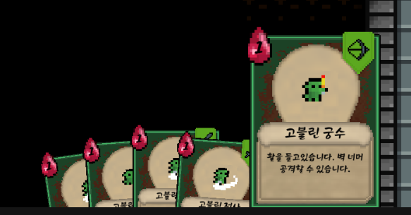 왼쪽 위에 어색하게 떠있는 투구는 황금고블린 스프라이트가 없어서 대체로 놔둔 이미지입니다.