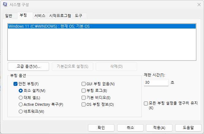 2-3. 안전모드로 부팅한 후 다시 안전 부팅 옵션을 해제 후, 부팅