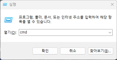- 명령프롬프트(CMD) 실행 // (단축키 : window + R -> cmd 입력 후 확인 버튼 클릭)