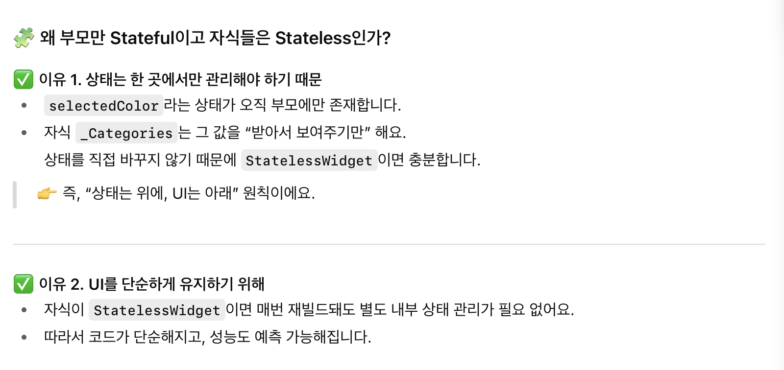 자녀는 Stateless이기 때문에 SetState를 사용할 수 없다.