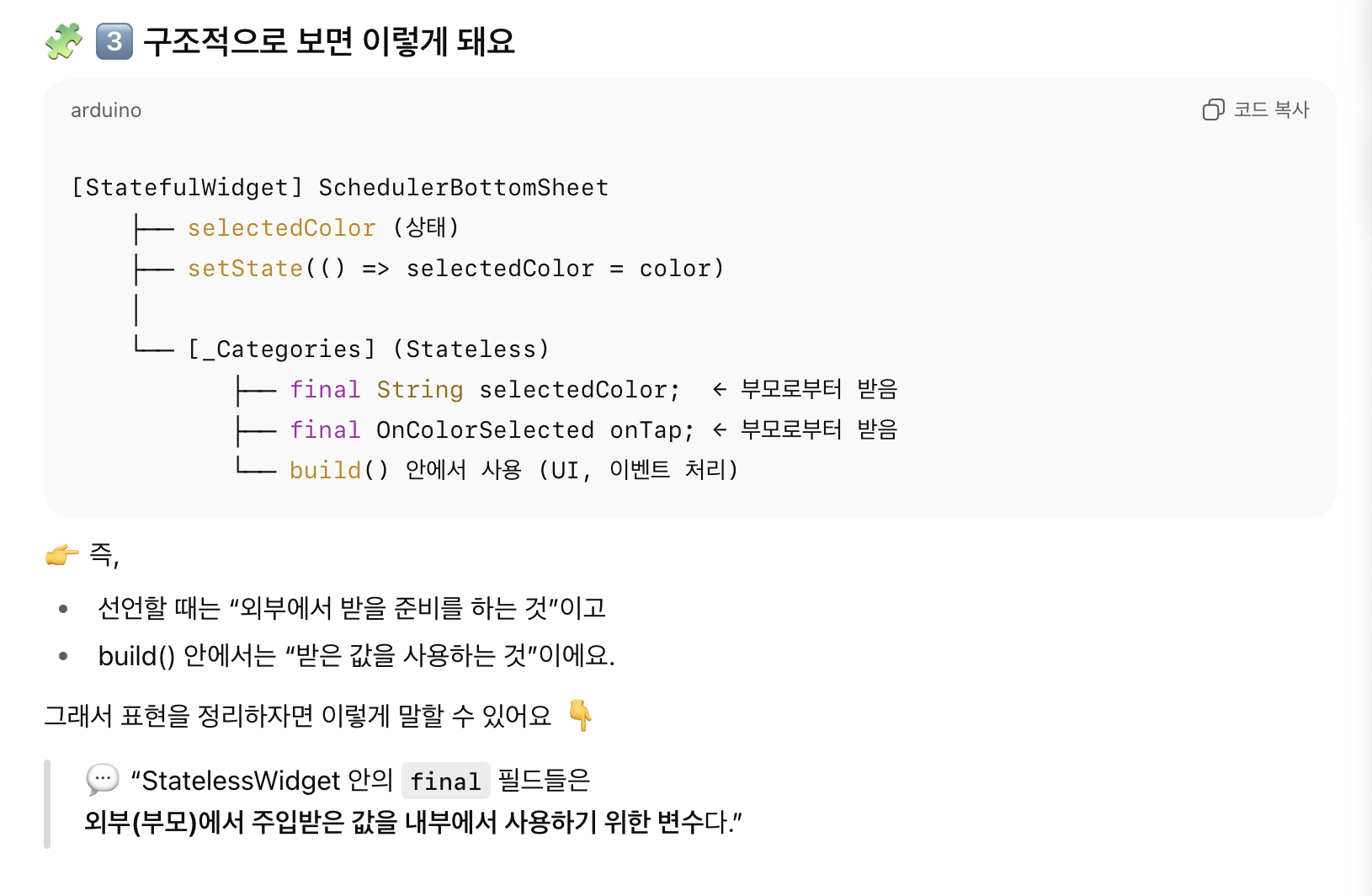 부모의 setState를 통해서 color 값을 selectedColor에 저장한다.