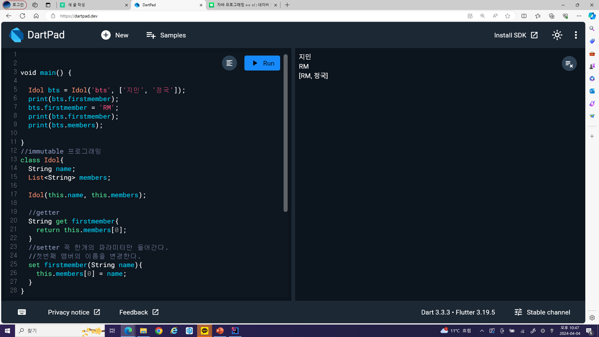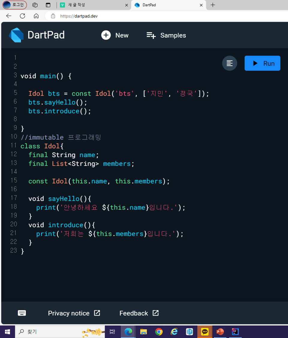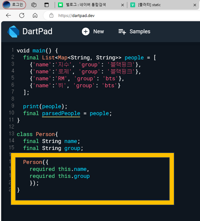 Idol blackpink2 = const Idol('블랙핑크', ['제니', '지수', '리사', '로제];