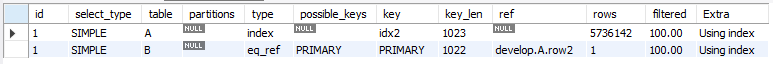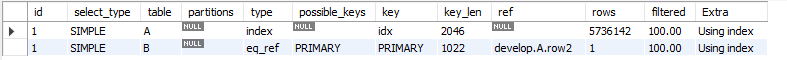 | select_type | table | type | key | key_len | rows |