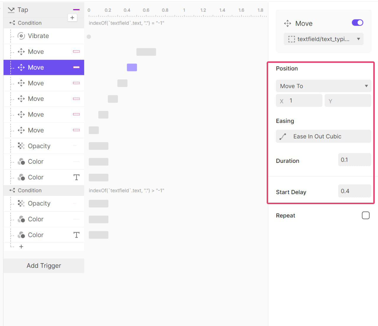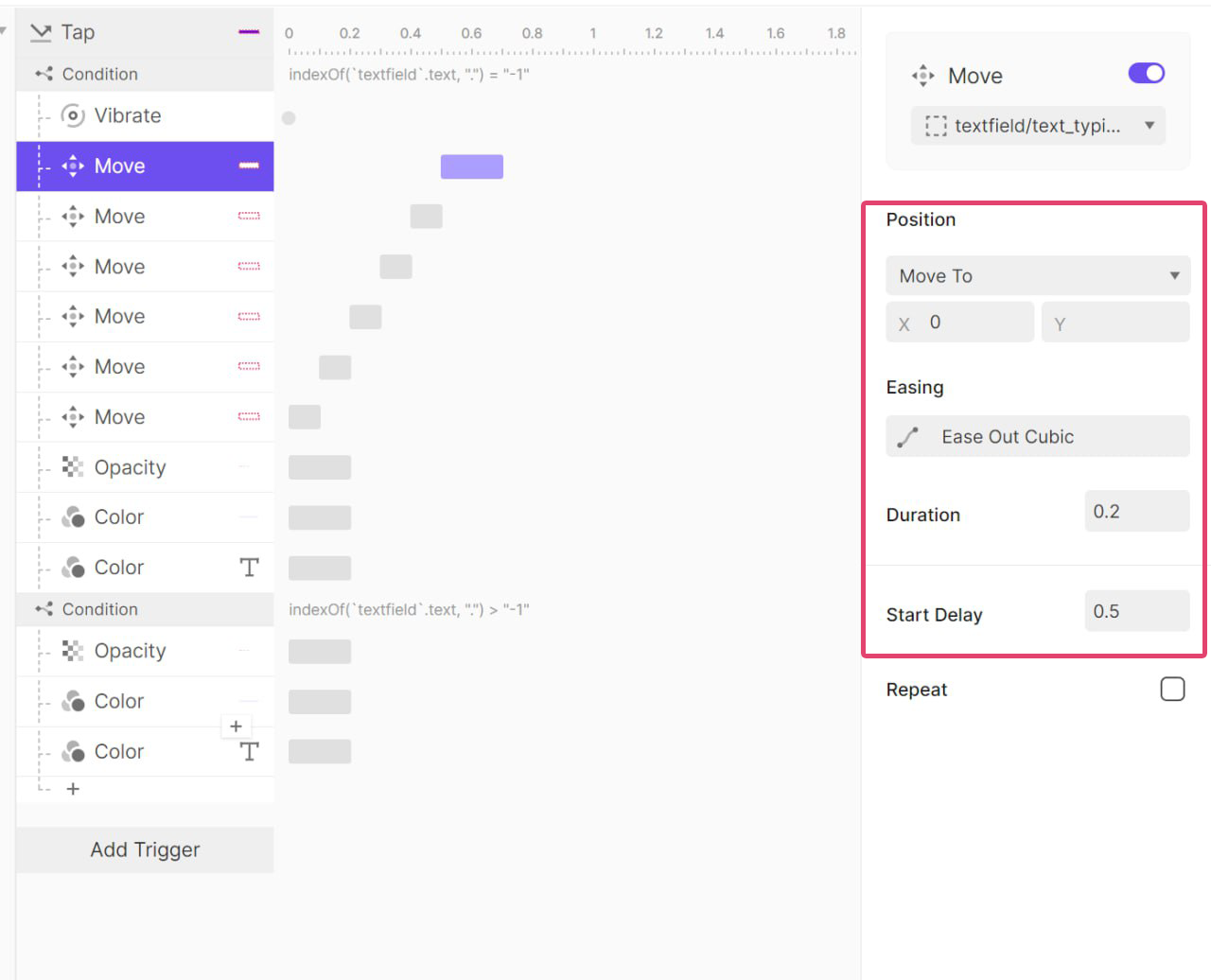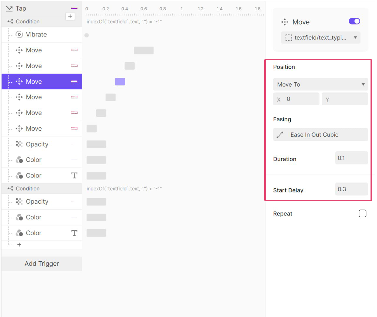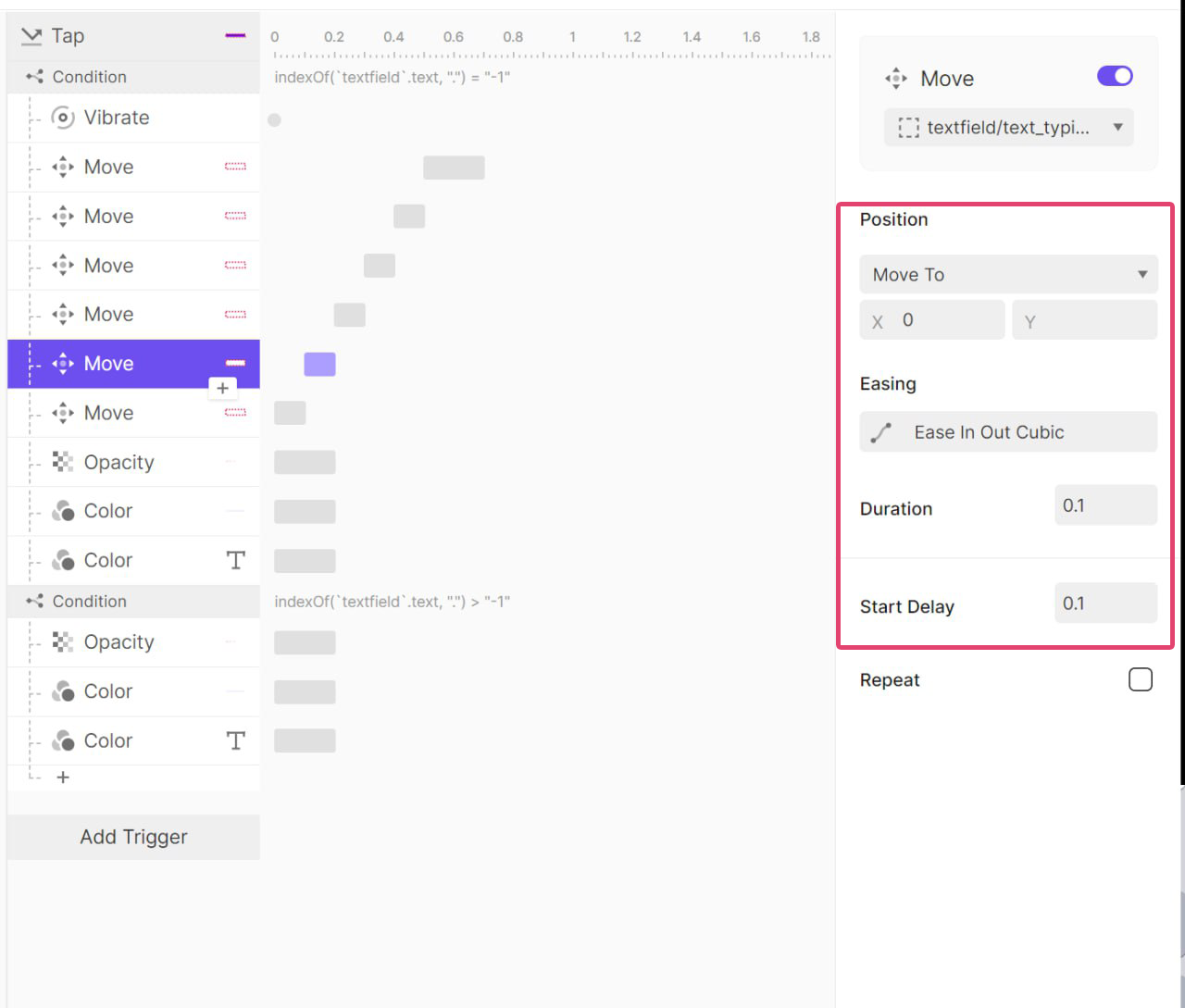 또 오른쪽으로 100ms 동안 1px 이동 후 원래 위치로 돌아오는 애니메이션이다.