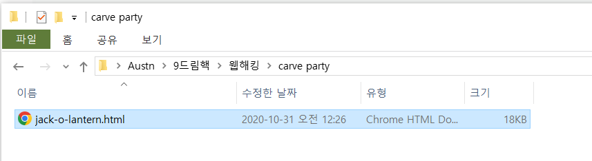 문제 파일을 받아보니 잭오랜턴 html 파일이 있다.