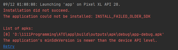 The application could not be installed: INSTALL_FAILED_OLDER_SDK