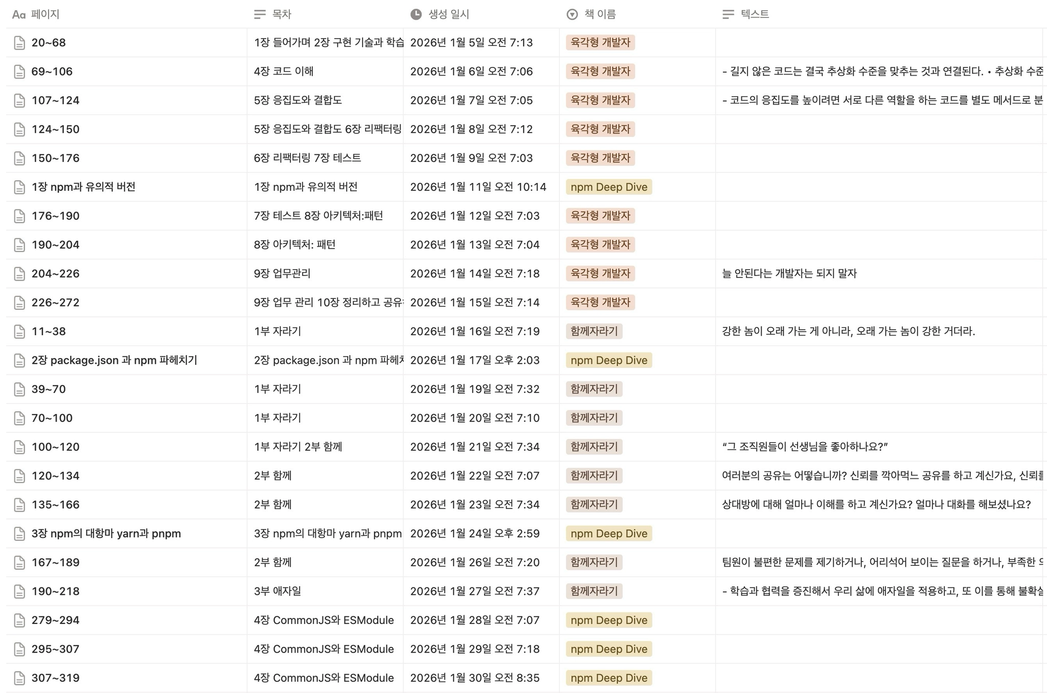 이를 통해서 1월에 육각형 개발자와 함께 자라기를 완독했다. 앱 개발자에게도 두 권의 책을 추천해서 함께 대화해보기도 했다.