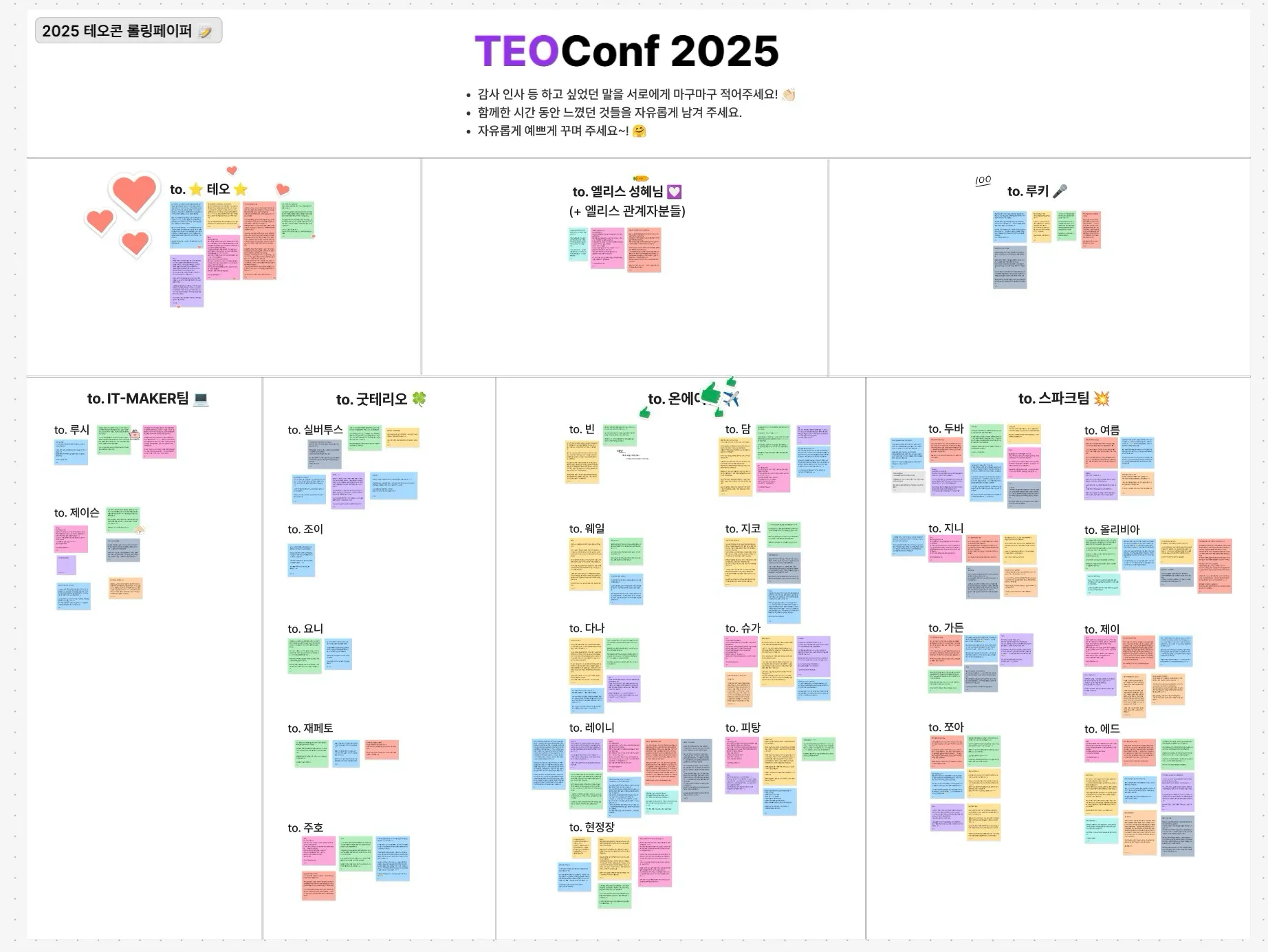 테오콘이 끝나고 에드가 정말 고맙게도 롤링페이퍼를 만들어주었고 스태프들끼리 작성했다.