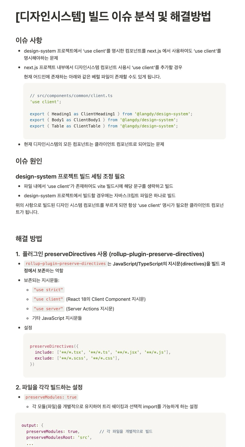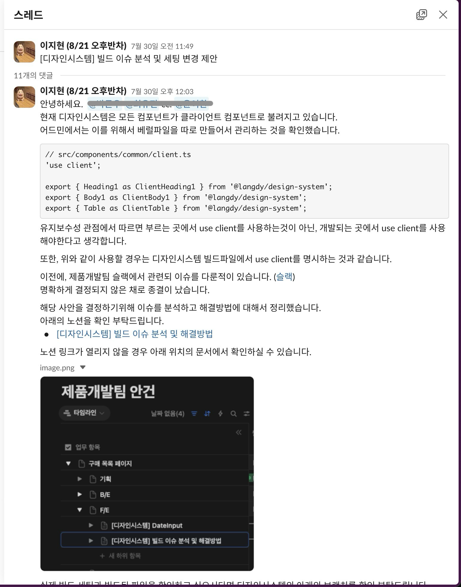 디자인 시스템 빌드 이슈 해결방법 공유 슬랙 | 노션 정리 |