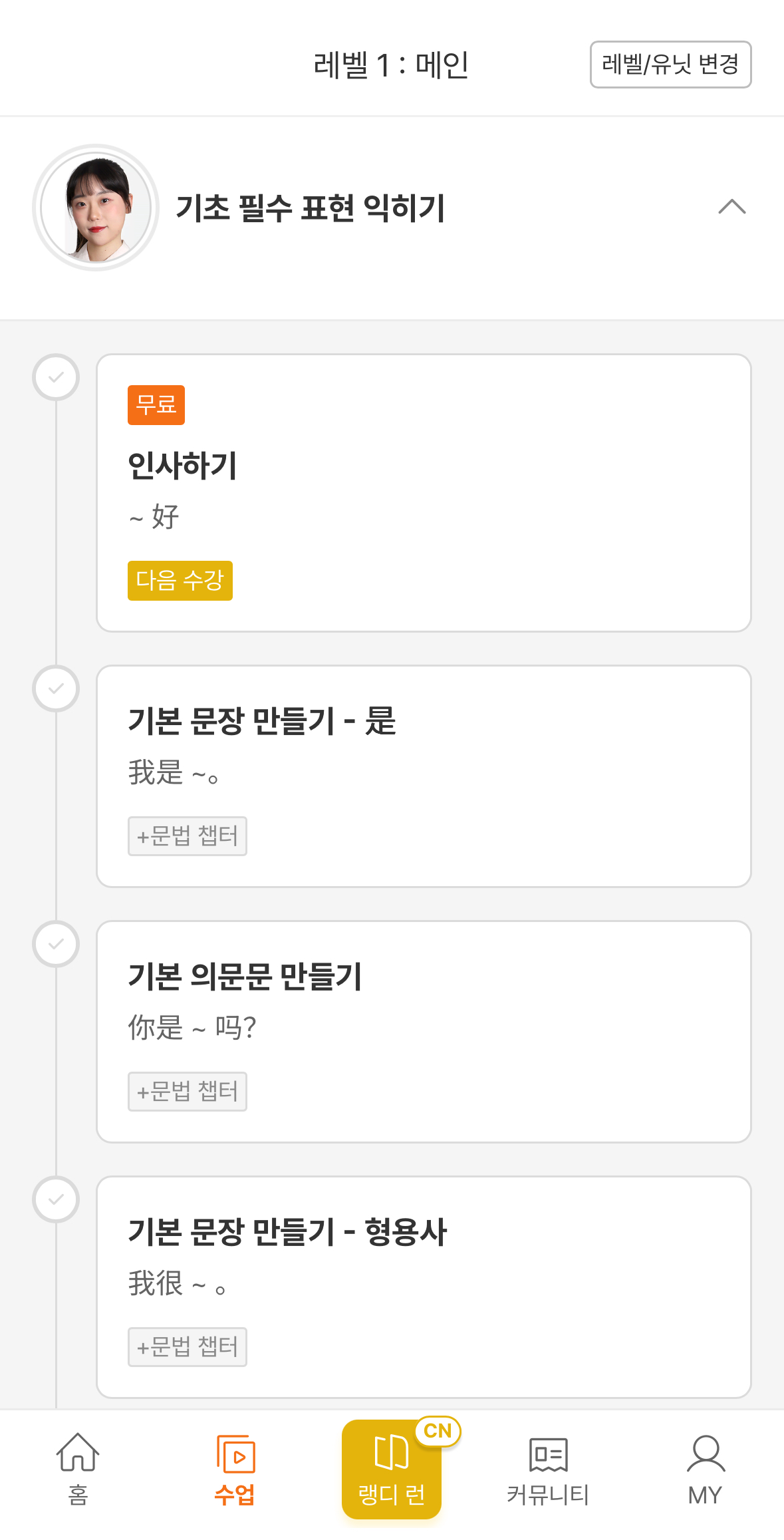 하나의 유닛에는 여러 챕터가 존재하며, 해당 챕터를 클릭하면 사용자가 그 챕터를 수강할 수 있는 공간으로 이동할 수 있다.