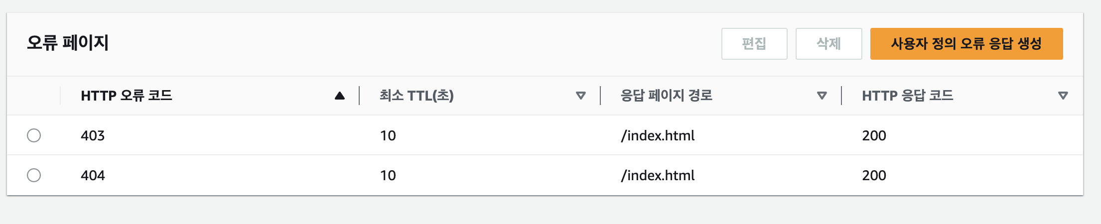 cloudefront > 배포 ID > 오류페이지 에서 설정가능하며, 본인의 경우 403 에러 페이지에 대한 처리만 되어있어 404 페이지도 추가해주었더니 해당 오류는 해결이 된 듯 했다.