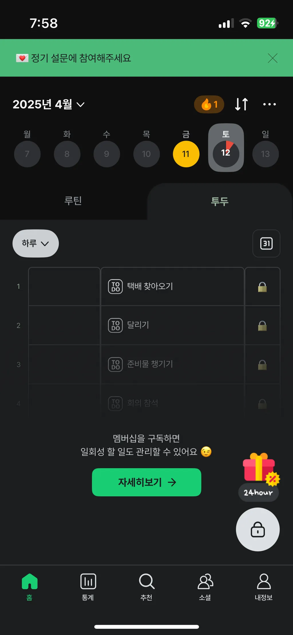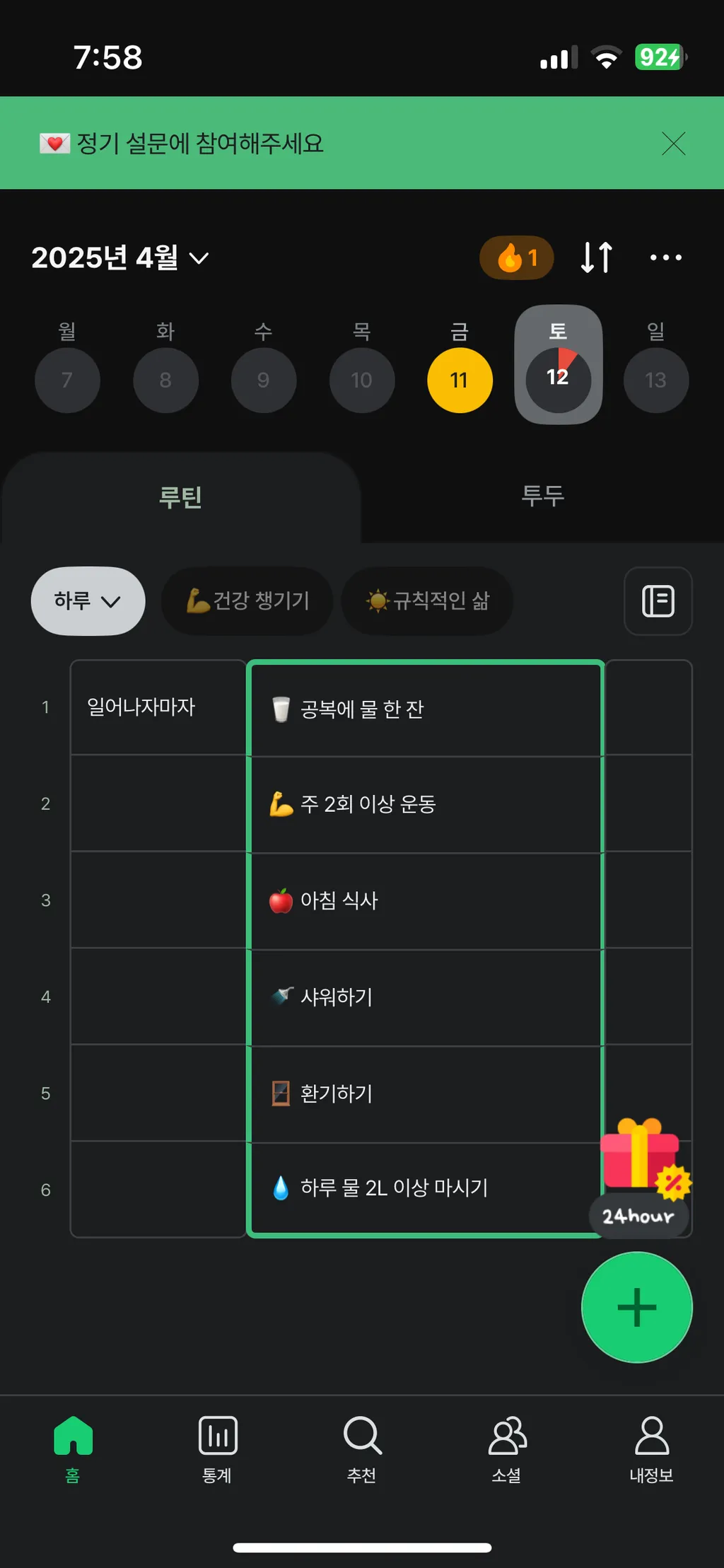 | 🔁 루틴 설정 | 반복되는 할 일을 빠르게 등록 → 습관 형성에 도움 |