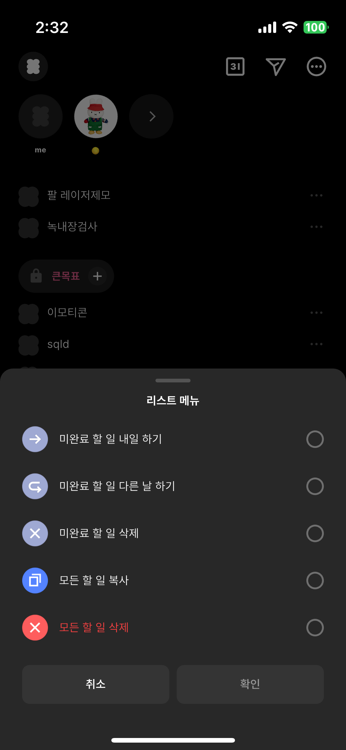 사용자는 자신만의 할 일을 직접 정의하고 완료 여부를 체크하며,