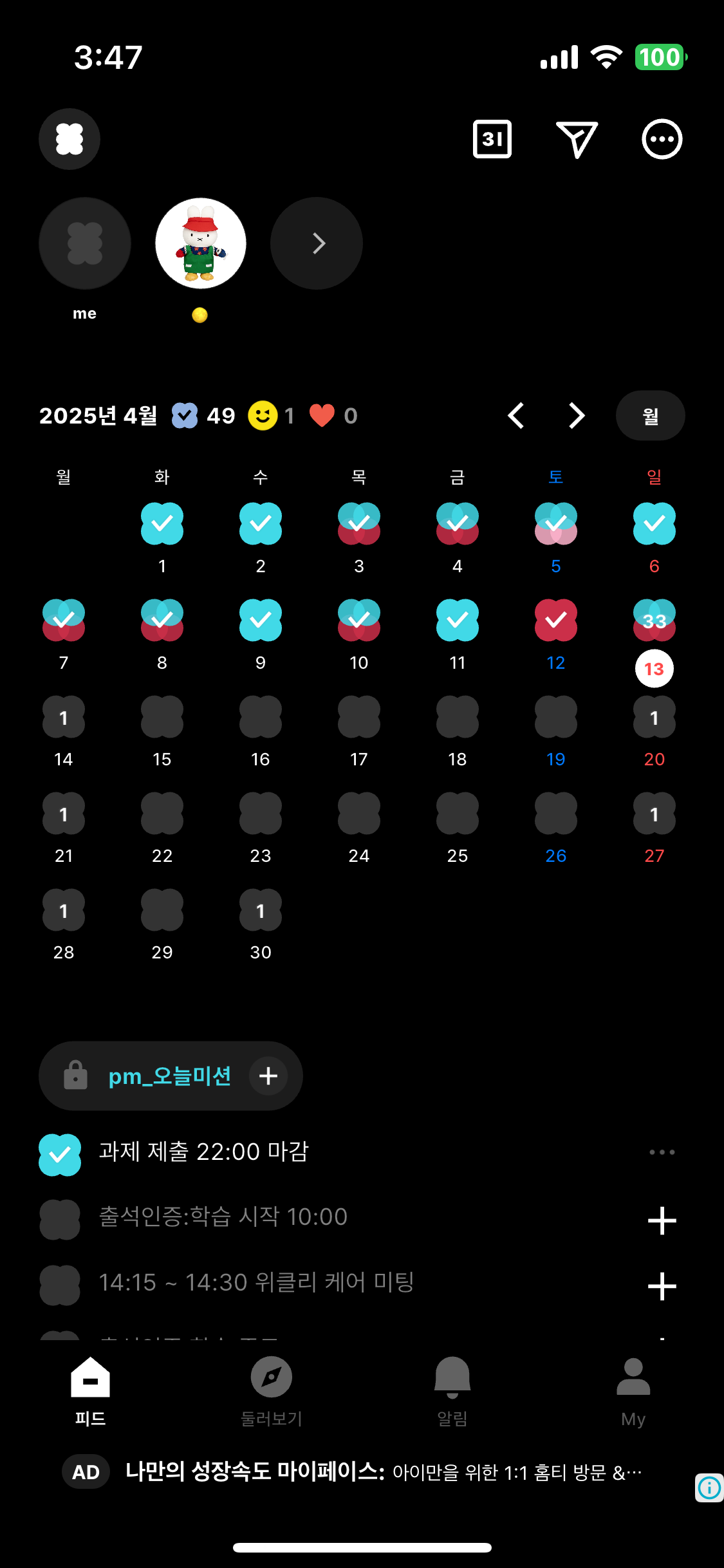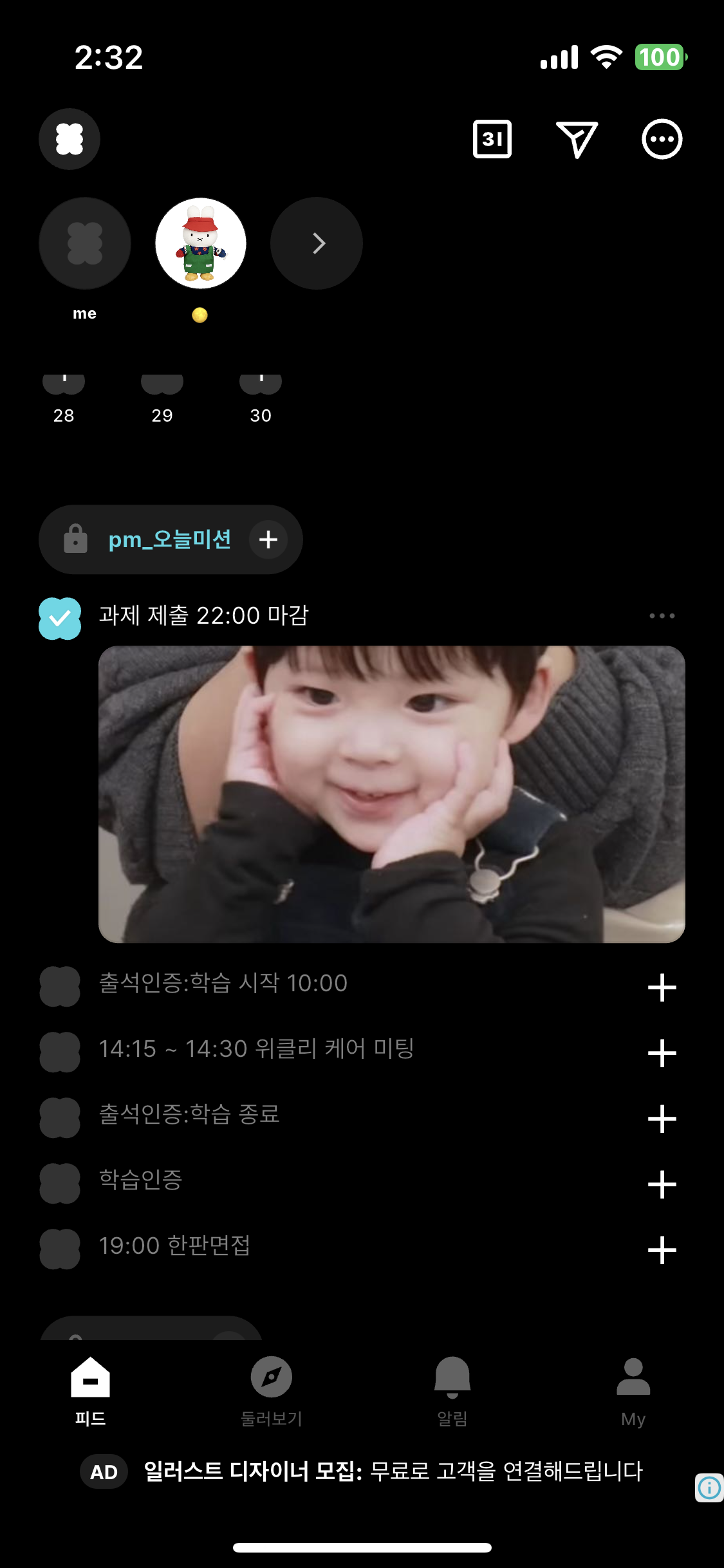 메이트들과 할 일 체크리스트를 공유하며 서로의 일상을 응원할 수 있는 소셜 기반의 할 일 관리 앱입니다.