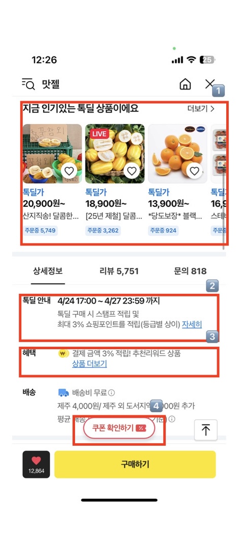 4️⃣ 톡딜가 및 최대혜택가