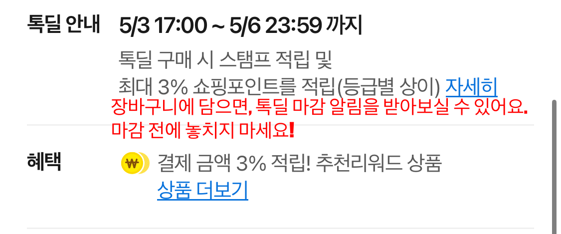 1️⃣ 톡딜 남은시간 안내