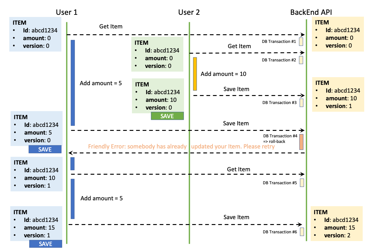 - 두 명의 사용자가 똑같은 아이템을 수정하고 있다([SAVE] 버튼이 있는 GUI 폼을 통해서)