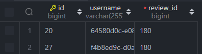 이젠 유저가 특정 리뷰에 좋아요를 누르면, 백엔드측은 리퀘스트를 받고 DB의 reviewLikes테이블에 아래처럼 데이터를 저장합니다:
