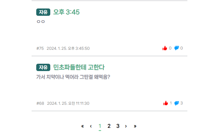 강의평가 기능을 보면 알겠지만, 수업 목록을 불러올때 페이지로 나누지 않고 하나의 json으로 받아오고 있습니다. 하지만 커뮤니티는 글들이 훨씬 많아질거기 때문에 페이지네이션 도입이 필요했습니다. 해당 작업이 프론트에서만 하고 끝낼거면 좋겠지만, 백엔드에서도 개선이 이루어져야 하는 작업이기에 꽤나 시간을 들여 사진처럼 도입에 성공했습니다.