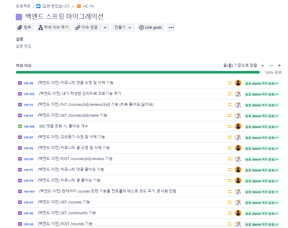 백엔드 마이그레이션은 24개의 티켓으로 나누어, 팀장인 제가 강의평가 관련 엔드포인트 기능 구현, 박건호 백엔드 팀장이 커뮤니티 관련 엔드포인트 기능 구현을 맡았습니다.