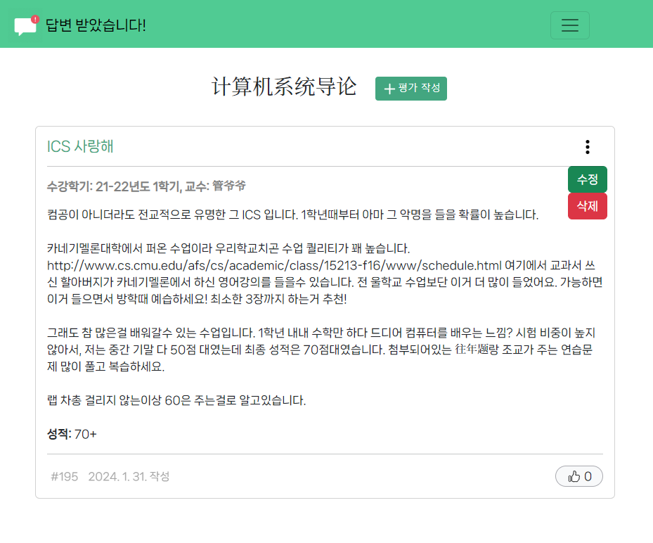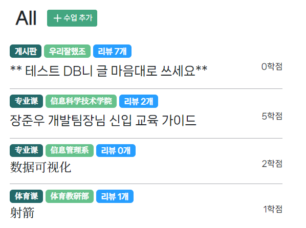 업데이트 이후 강의평가 response는 아래와 같습니다: