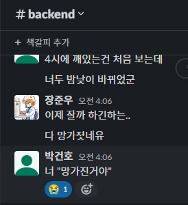 재학생 개발팀인 특성 상 방학에만 개발이 가능한 우리잘했조는, 많은 기능들을 버그없이 개발해내기 위해 개발진 7명 모두- 그리고 특히 팀장인 저, 프론트/백엔드 팀장인 김혜원, 박건호 학우는 밤샘도 마지않으며 개발을 진행했습니다.