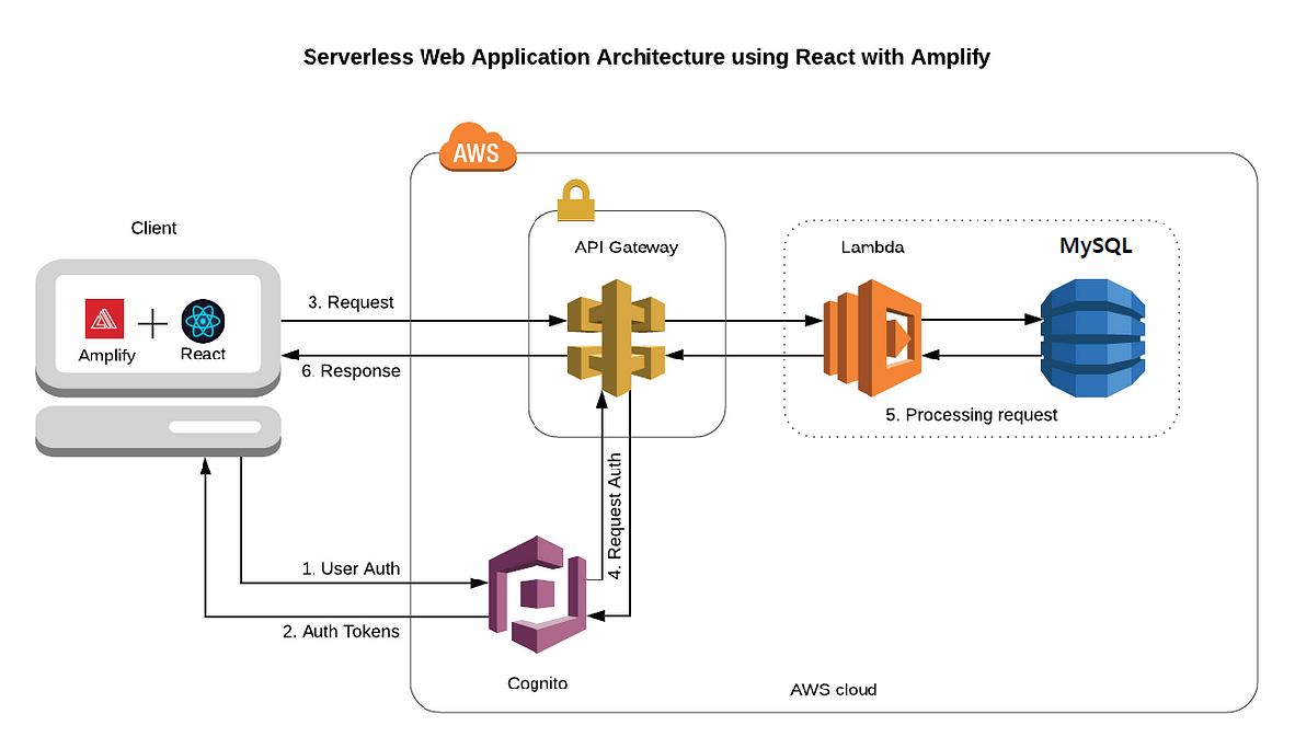 답변, 받았습니다는 최초에 Express.js를 사용한 백엔드로 개발되었습니다. 이를 AWS Amplify 서비스와 연계해서, AWS API Gateway에 올려 Lambda 서비스로 서버리스 API를 구축했었습니다. (해당 백엔드 배포 과정은 Amplify가 자동으로 진행해주었습니다) 당시 구조는 아래와 같습니다: