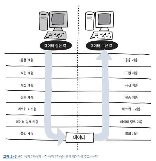 최종적으로, 데이터는 매 계층을 위처럼 송신/수신 측에서 역으로 거쳐서 전송된다.