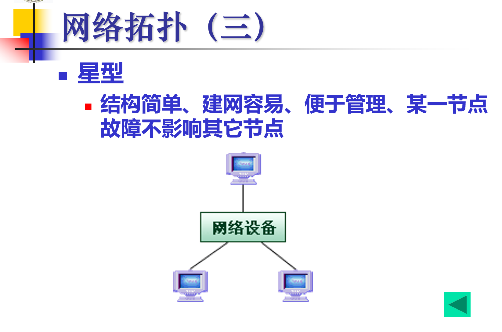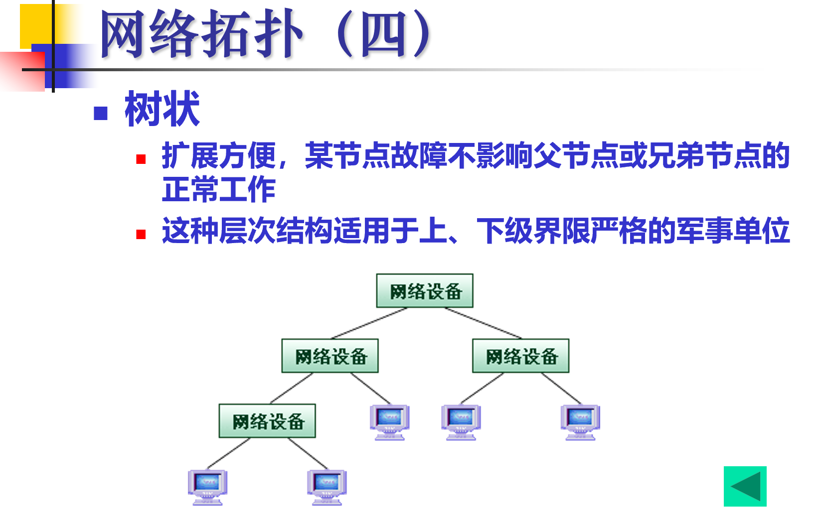 확장이 편리하고, 자식 노드가 고장나더라도 형제/부모 노드에 영향을 주지 않는다. 상하관계가 명확한 군사용 네트워크로 많이 사용되고, 별 네트워크가 계층을 가지면 트리형이 된다 한다.
