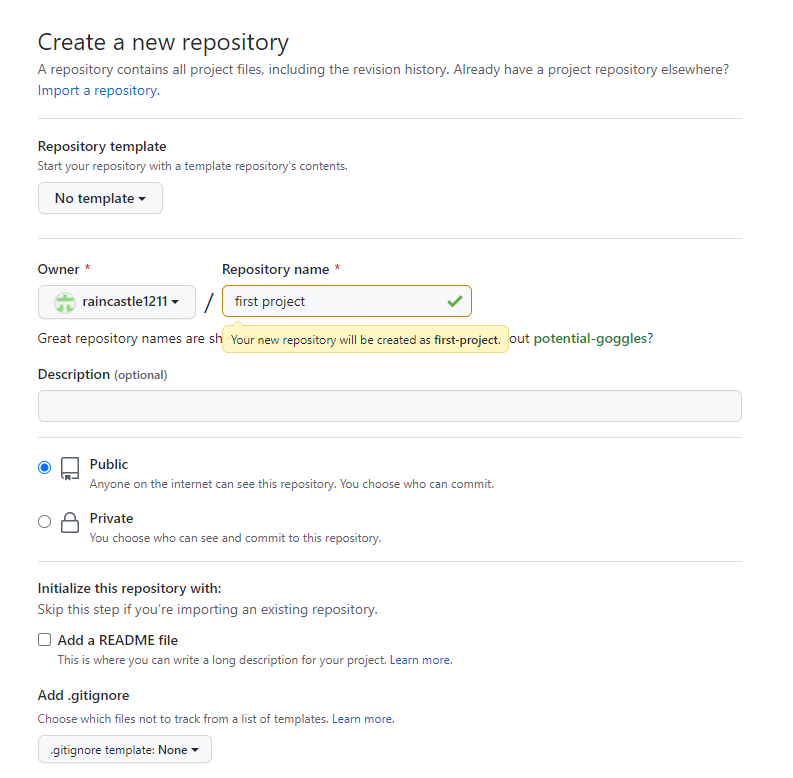 $ git remote add origin https://github.com/raincastle1211/first-project.git