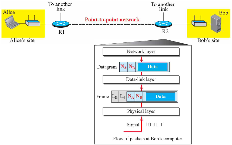 Bob은 받은 데이터 패킷을 역캡슐화해가며 자신의 주소가 맞는지 확인하고 상위계층으로 보낸다.
