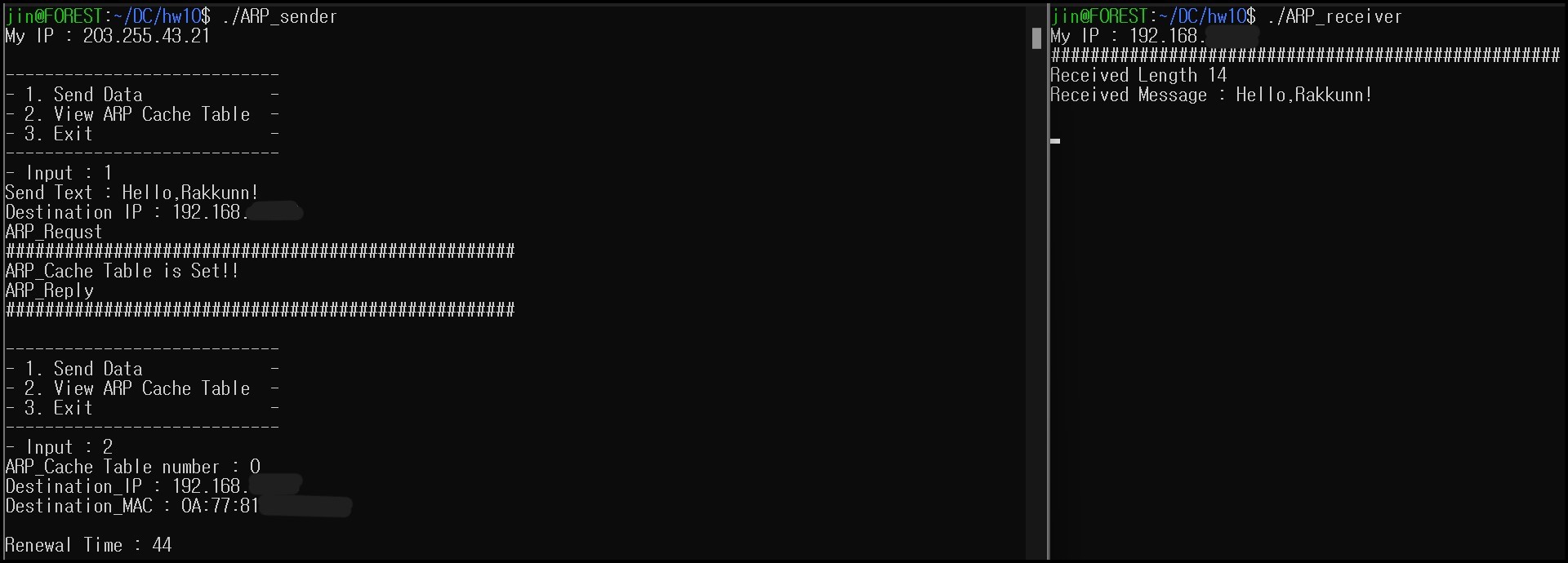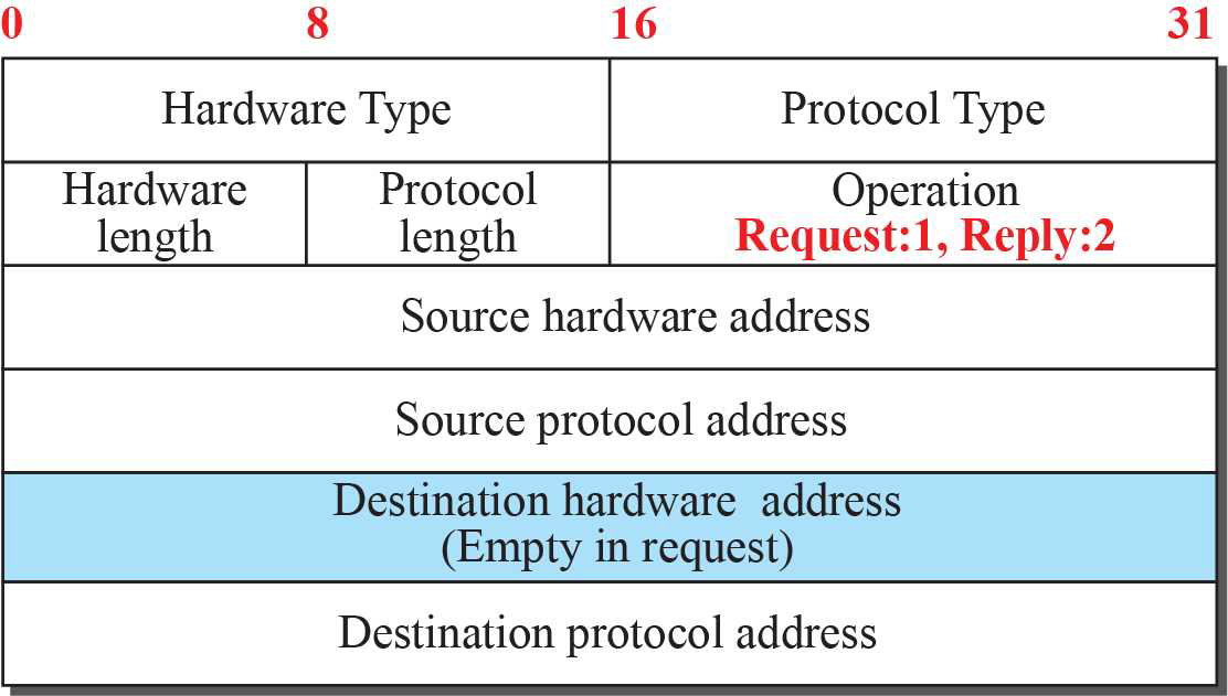 Destination HW address : 수신지 데이터-링크 계층 주소 (요청 시에는 empty)