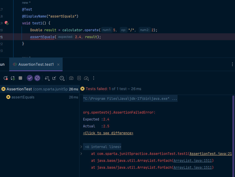 assertNotEquals(2.5, result); // 결과가 다름을 예상한다