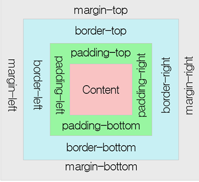 구성 요소 설명 Content 요소의 실제 내용이 위치하는 영역. Padding 내용(content)과 테두리(border) 사이의 공간. Border 패딩 주위에 그려지는 테두리. Margin 테두리(border)와 외부 요소 간의 간격.