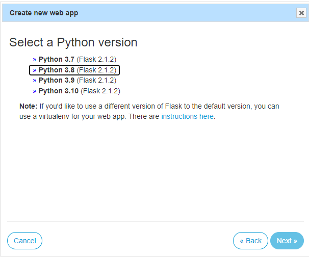 03:15 ~/mysite $ ls #파일 목록 확인 Project.zip __pycache__ flask_app.py 03:17 ~/mysite $ unzip Project.zip #파일 압축 풀기 Archive: Project.zip inflating: app.py inflating: database.db inflating: requirements.txt creating: templates/ inflating: templates/motto.html inflating: templates/music.html 03:18 ~/mysite $ ls #압축해제 확인 Project.zip __pycache__ app.py database.db flask_app.py requirements.txt templates03:18 ~/mysite $ python -m venv venv #python 가상환경 생성 03:20 ~/mysite $ source venv/bin/activate #가상환경 활성화 (venv) 03:20 ~/mysite $ pip install -r requirements.txt #목록에 있는 lib 설치