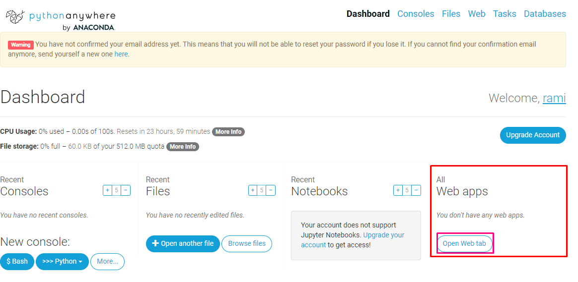 Pythonanywhere 회원가입 : https://www.pythonanywhere.com/