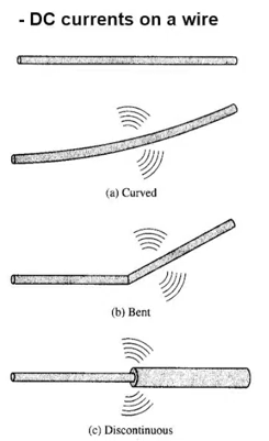 DC 전류도 Curved, Bent, Discontinous 조건에서 전류가 왜곡이 되기 때문에 방사가 일어난다.