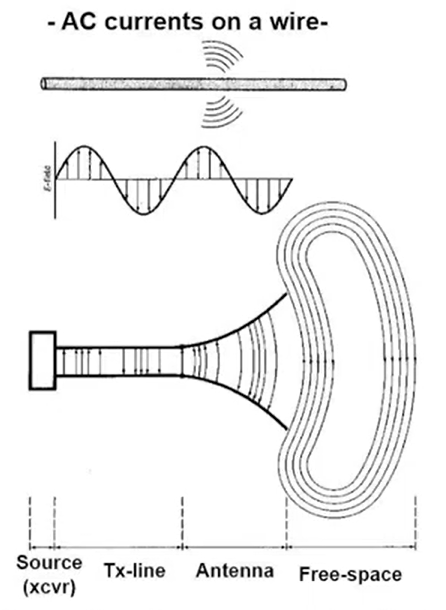 그러나 전류가 주파수를 가지는 형태(감속, 가속)면 방사가 필수적으로 일어난다.