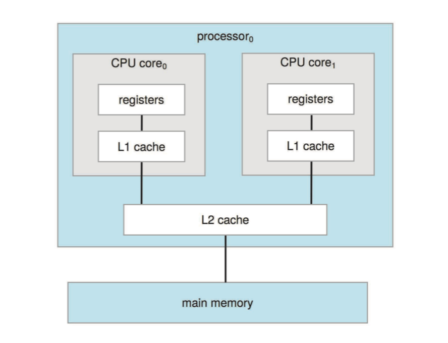 💬 결국 Multicore는 앞서 얘기한 컴퓨터 시스템(버스+메모리+CPU) 자체를 나눈 것이 아니다.