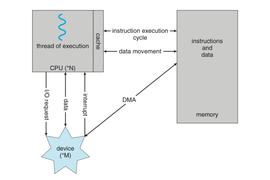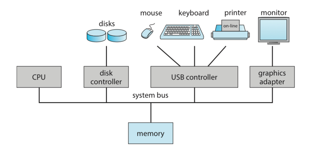 컴퓨터 시스템은 하나 이상의 CPU와 여러개의 Device Controller을 가지고 있고,