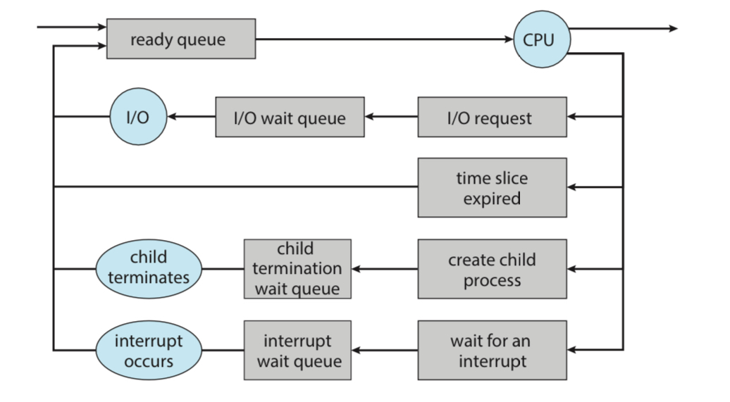 💡 As process enter the system, they are put into a ready queue, where they are ready and waiting to execute on a CPU's core.