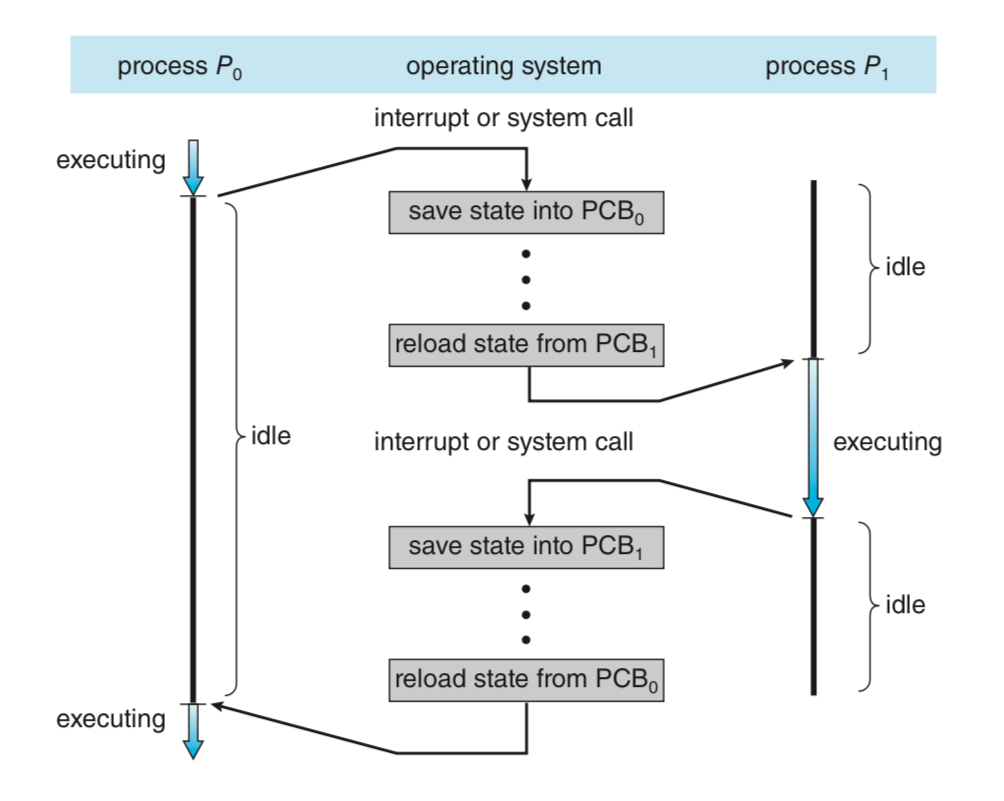 💡 Switching the CPU core to another process requires performing a state save of the current process and a state restore of a different process. This task is known as a context switch.