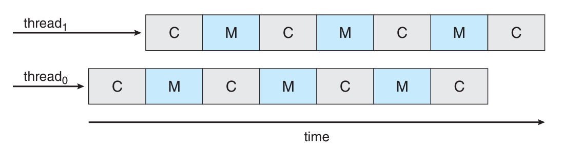 한 쓰레드가 data를 기다리면 다른 쓰레드가 그때 core를 차지하는 것이다.