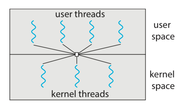 💡 Although the many-to-many model appears to be the most flexible of the models discussed, in practice it is difficult to implement. In addtion, with an increasing number of processing cores appearing on most systems, limiting the number of kernel threads has become less important.