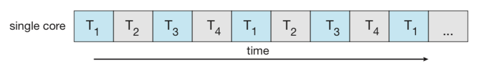 하나의 코어가 여러 개의 쓰레드를 실행시키는 것이 "동시성"이다.