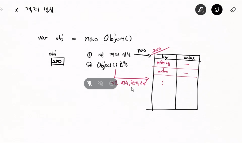 var obj2 = Object.create(Object.prototype);//객체의 주소를 넣어준것 최소 object라는 객체를 통해서 생성