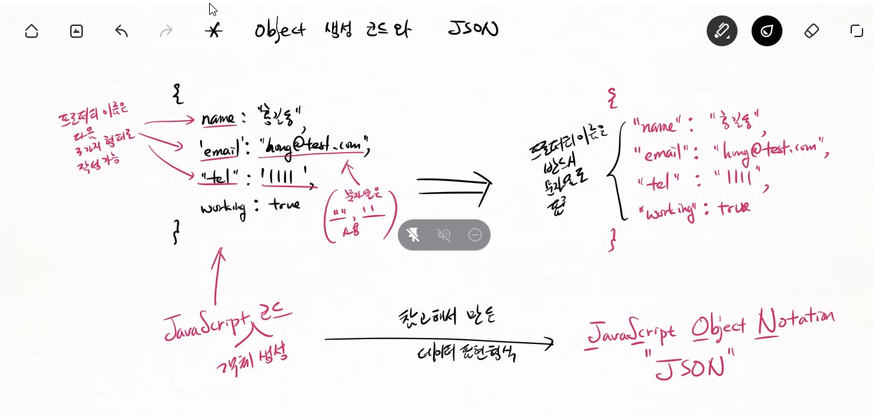 *자바스크립트 객체 생성코드와 JSON