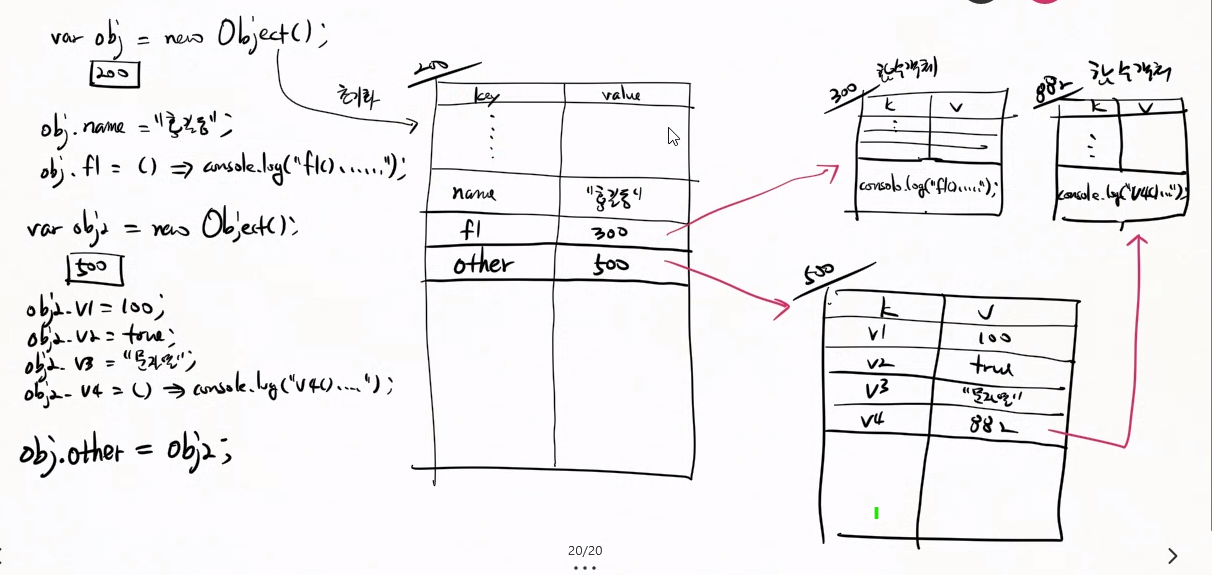 자바스크립트 객체는 퉁쳐서 프로퍼티 (프로퍼티 지만 함수, 변수)