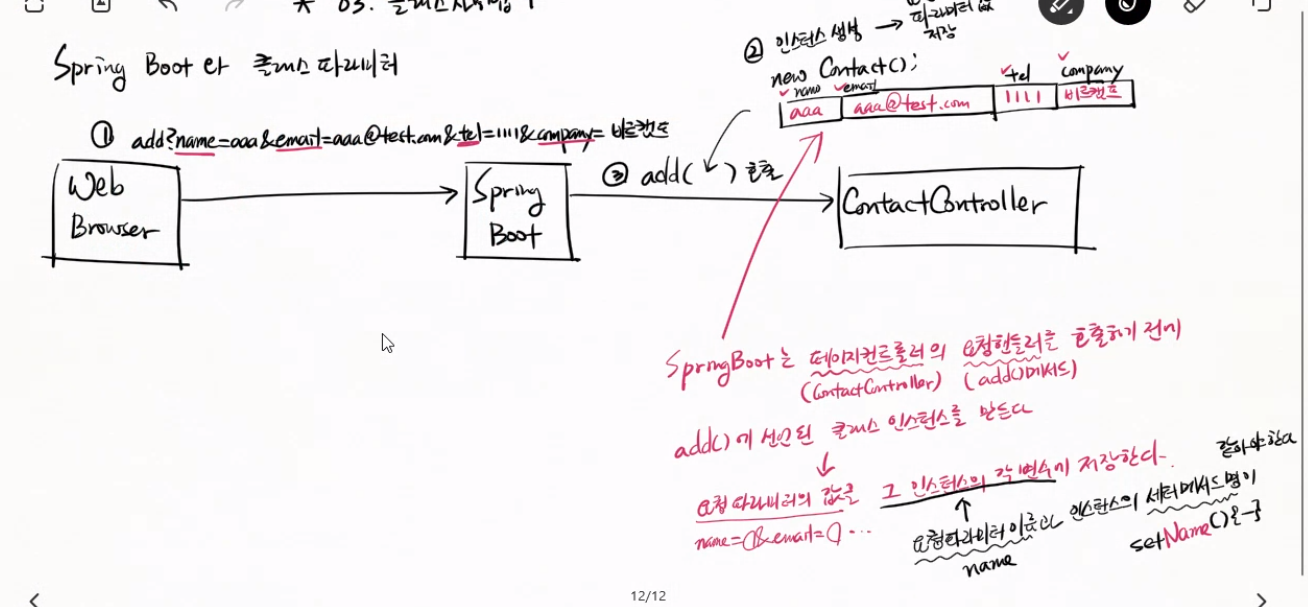 *쿼리스트링의 파라미터이름과 세테메서드의관계 (Spring boot가 하는 역할)