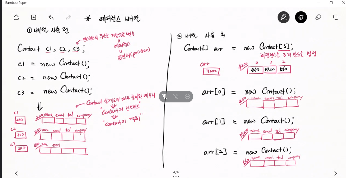 2) 레퍼런스 배열을 만들었다고 인스턴스존재하는게 아니다. 레퍼런스배열만 준비된것.